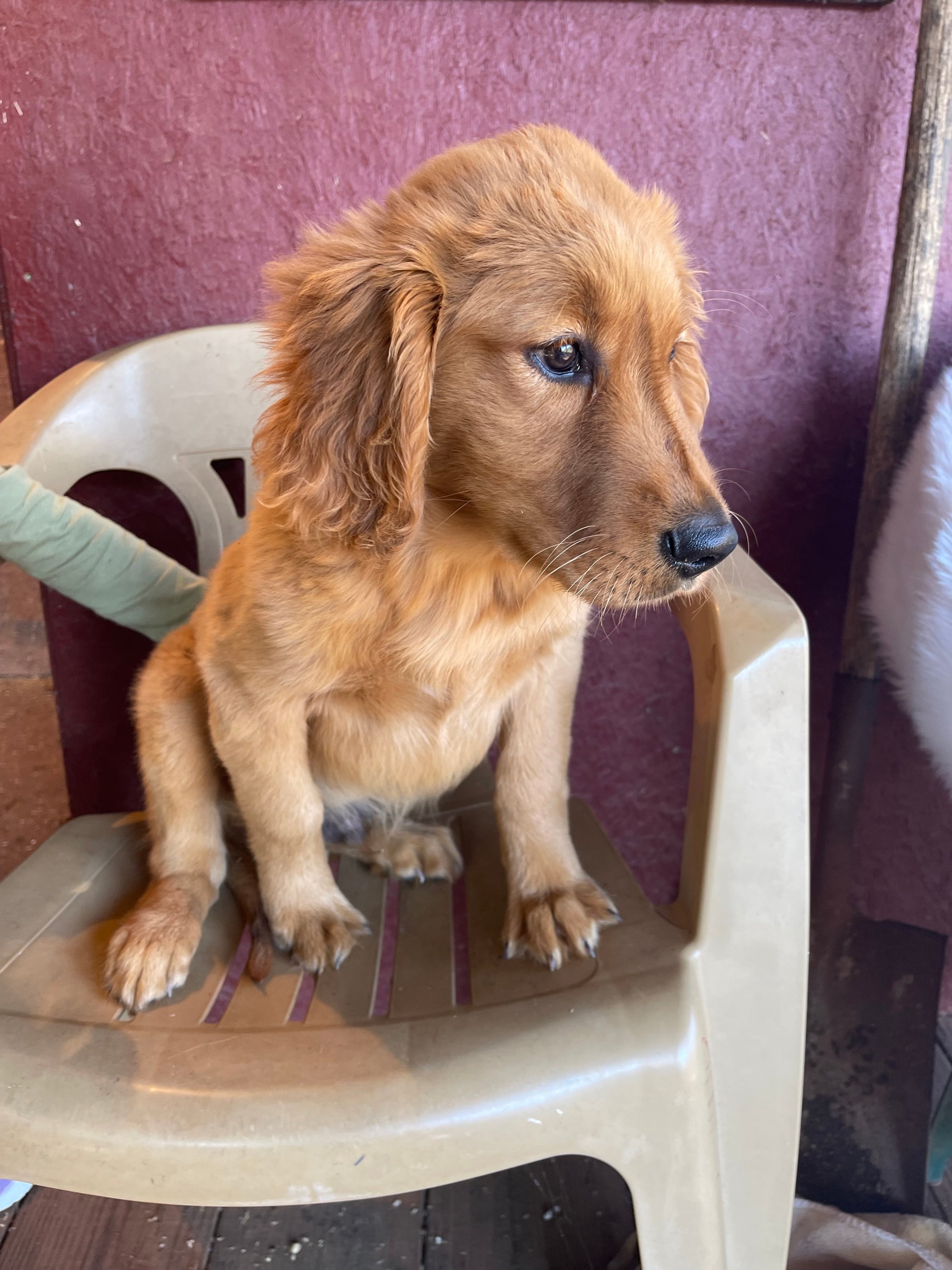 This sweet puppy has kind of a unique story! This is brownie and buddy’s puppy! He was the one and only puppy born! He is his very own litter of one! He is incredibly sweet and docile! He has been spending much more time with Mom and his big aunties since he was the only baby! He is now playing with a mini goldendoodle puppy as well for socialization! He is so great with children and will bond easily with his family! We are just now listing him because we did get attached to him and were thinking about keeping him as a family/ farm dog! But we already have Rusty and decided to put him up for adoption so he could bless another family! He will come with his CKC registration papers, one your health guarantee and health paperwork! He is up-to-date on vaccinations and deworming! Contact us to schedule a meeting to see if he is a good fit for you and your family! He is a very sweet boy!